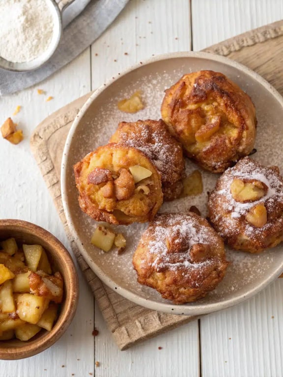 Place the powdered sugar in a fine-mesh sieve and generously dust the warm fritters before serving. They are best enjoyed the same day while still slightly warm.Pro Tips & Tasty Tweaks