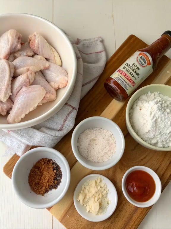 Here is everything you’ll need to make these incredibly crispy chicken wings. We love how this short list creates such a big flavor payoff.- 2 pounds chicken wings, split into drumettes and flats, patted dry