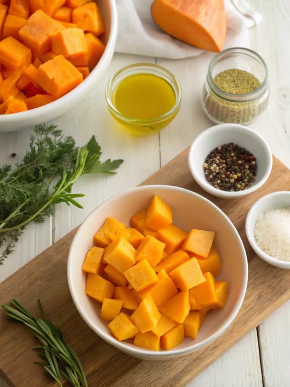 In a large bowl, toss the cubed squash with olive oil until all pieces are lightly coated and glistening. This thin, even layer is crucial for the seasoning to stick and for promoting browning.3. Season the squash
