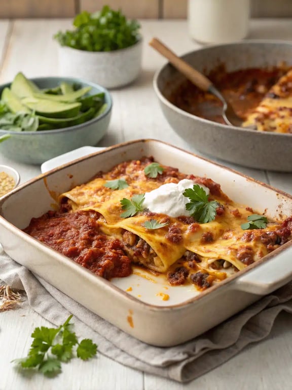 After all that wonderful baking, it’s time for the best part: serving up this comforting creation. In our team tests, we found that a little thoughtfulness in presentation and pairing turns this hearty dish into a complete, memorable meal. Start by slicing your rested casserole into generous squares. We love plating it with a dollop of cool sour cream and a sprinkle of fresh cilantro right on top for a pop of color and freshness. For sides, a simple crisp green salad with a lime vinaigrette cuts through the richness beautifully. Alternatively, classic Mexican casserole recipes like this one pair wonderfully with cilantro-lime rice or a quick black bean and corn salad. For a truly festive spread, set out small bowls of extra toppings like diced avocado, sliced jalapeños, or a quick pico de gallo so everyone can customize their plate. A pitcher of agua fresca or iced tea makes for the perfect drink pairing. One of our favorite reader tips is to serve this ground beef enchiladas casserole directly from the baking dish for a cozy, family-style dinner. It encourages everyone to dig in and share the experience, which is really what this comforting food is all about.Mistakes to Avoid