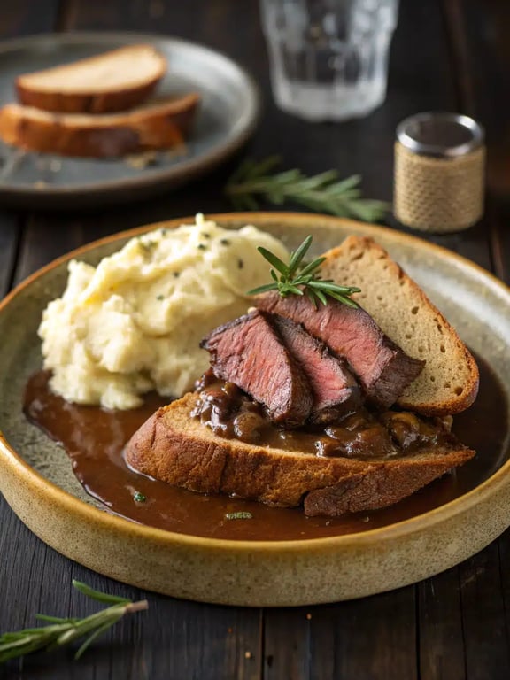 A classic comfort food featuring tender beef chuck roast simmered in rich savory gravy and served over buttery egg noodles. This hot beef sandwich in a bowl delivers deep, satisfying flavors that feel like a warm hug.