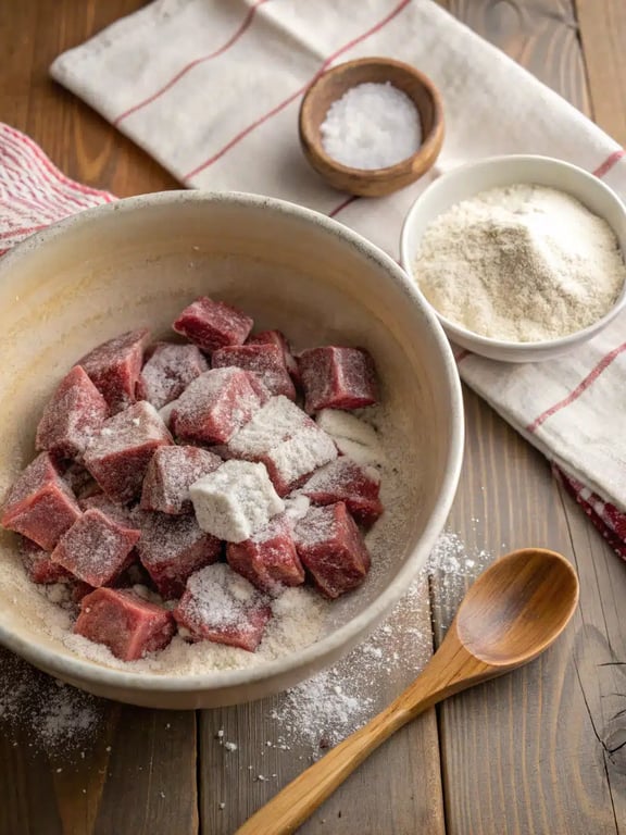In a large bowl, toss the cubed beef with the flour, salt, and pepper until evenly coated. Heat the oil in a large Dutch oven or heavy pot over medium-high heat until shimmering.Step 2: Achieve a Perfect Sear