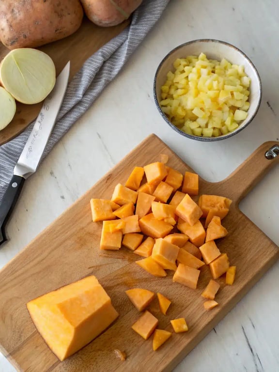 Follow these simple steps to build layers of flavor in your black bean sweet potato soup. We’ve broken it down so you can achieve the perfect texture every time.Step 1: Sauté the Aromatics