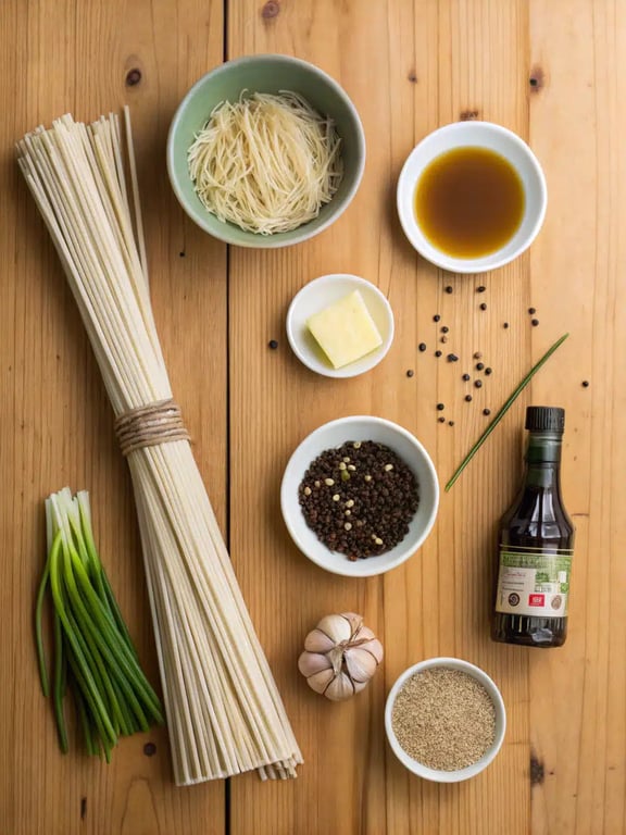 While the noodles cook, heat the vegetable oil in a large skillet or wok over medium heat. Add the minced garlic and the white parts of the green onions. Cook, stirring constantly, for about 1 minute until fragrant but not browned.Step 3: Toast the Pepper with Noodles