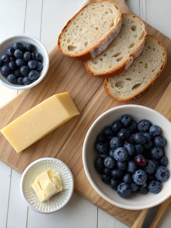 Here’s everything you’ll need to create this unforgettable blueberry cheese sandwich. We love how each component plays a specific role, from the tangy bread to the sweet, bursting berries.- 2 slices sourdough bread