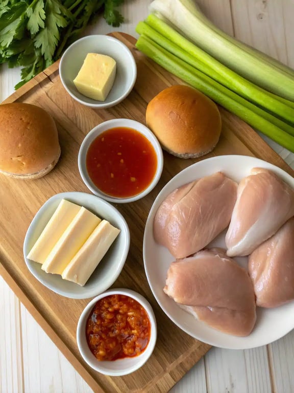 Ingredients for buffalo chicken sliders