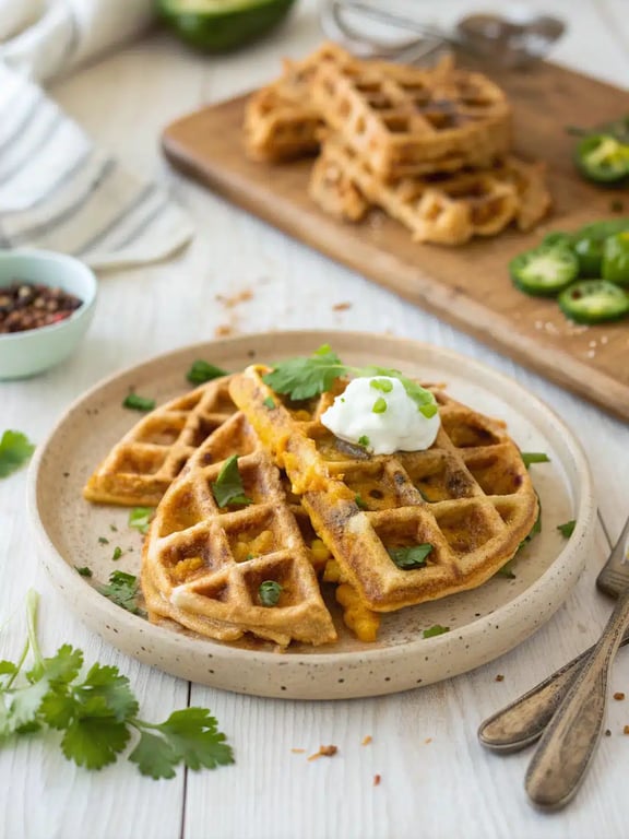 We love how versatile these savory waffles are. They truly shine as the star of any meal, from a lazy weekend brunch to a fun and easy weeknight dinner. You can build an entire menu around them or simply enjoy them on their own. During one of our team test sessions, we discovered that serving them with a dollop of cool, creamy sour cream and a side of fresh pico de gallo creates a perfect balance of temperatures and textures that everyone adored. For a complete meal, try pairing these cheese waffles with sunny-side-up eggs, allowing the runny yolk to create a rich sauce. A simple side salad with a lime vinaigrette also cuts through the richness beautifully. If you’re serving them for dinner, they are fantastic alongside a hearty bowl of chili or a light tomato soup. We often find that the best way to enjoy these spicy waffles is straight from the iron, but don’t worry, we have plenty of tips for keeping them perfect for a crowd.Mistakes to Avoid