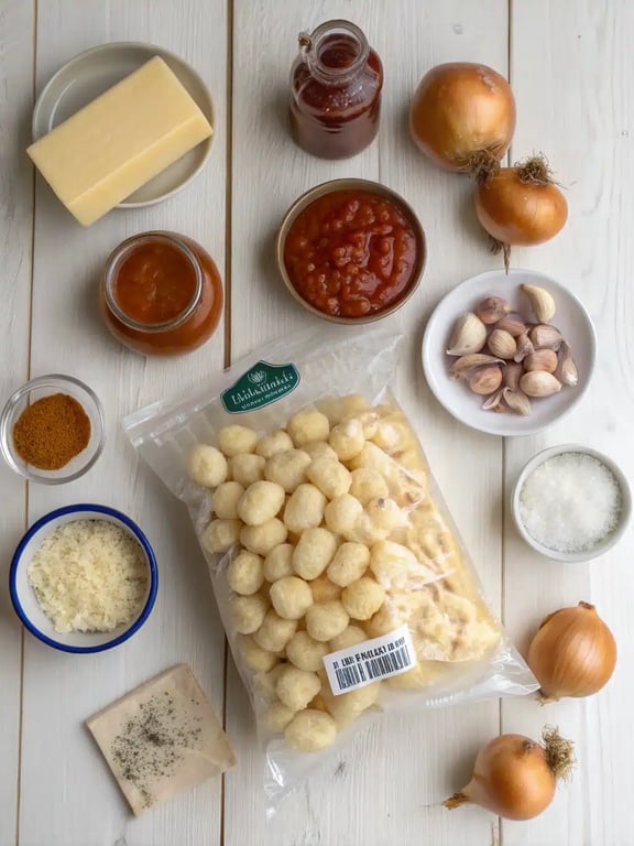 Ingredients for cheesy gnocchi bake