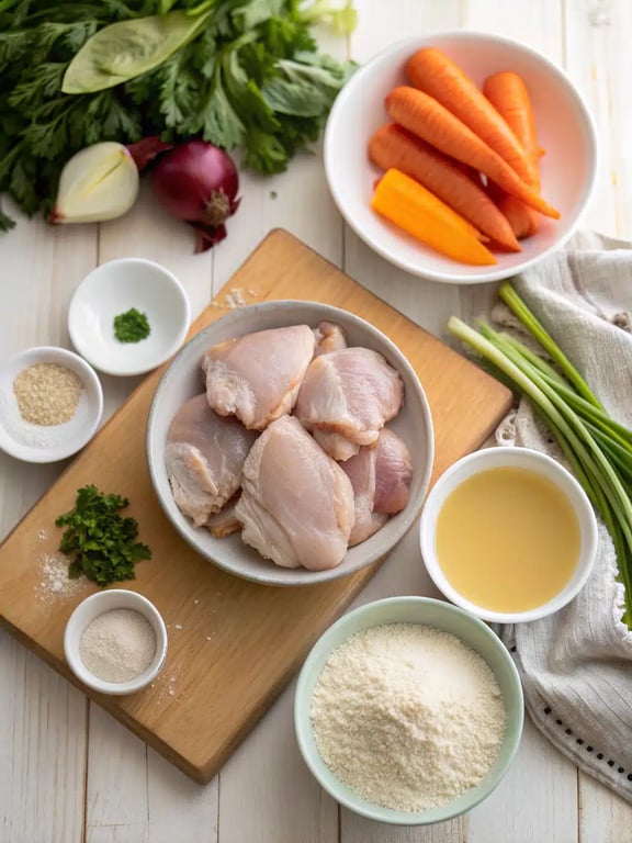 Here’s everything you’ll need to create this comforting dish. We love using boneless, skinless chicken thighs for their rich flavor and tenderness, but the beauty of this recipe is in its straightforward, wholesome components. Gather these ingredients, and you’re well on your way to a perfect pot of southern chicken dumplings.