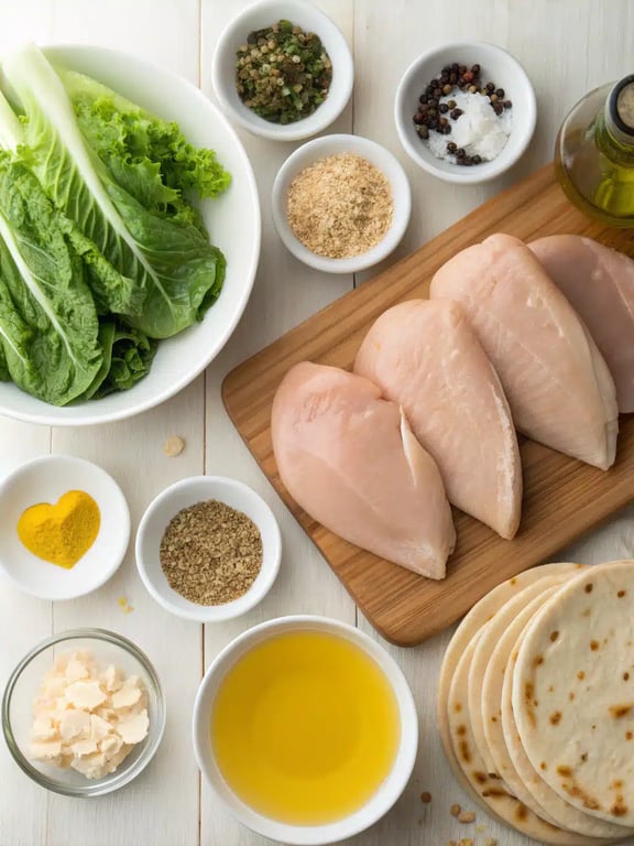 Here’s everything you’ll need to create this delicious Mediterranean flatbread recipe. We find that using high-quality Parmesan cheese and a fresh romaine heart really elevates the final dish.- 1 pound boneless, skinless chicken breasts