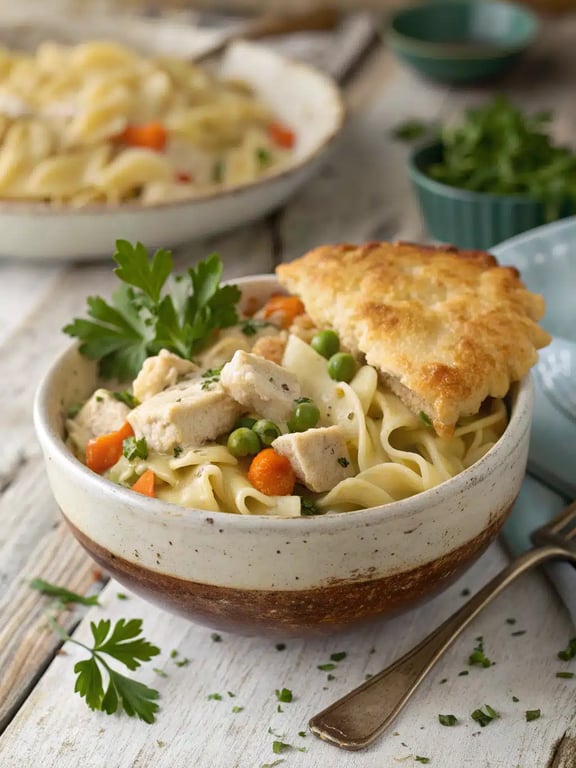 This creamy chicken pot pie pasta combines tender chicken and egg noodles in a rich, comforting sauce. A delicious one-pot meal the whole family will love.