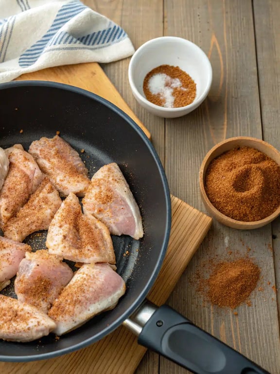 In a large skillet over medium-high heat, heat olive oil and cook chicken pieces until no longer pink, about 6-8 minutes. Sprinkle taco seasoning over the chicken and stir until evenly coated and fragrant.Step 3: Combine the Filling