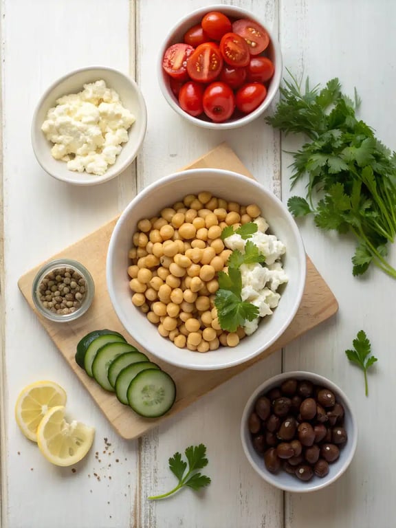 Follow these simple steps to create your own vibrant Mediterranean chickpea salad. We’ve made the process straightforward so you can have a delicious, healthy meal ready in no time.Step 1: Combine the Salad Base