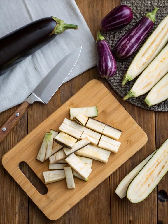 Heat 2 tablespoons of vegetable oil in a large skillet or wok over medium-high heat. Add the eggplant batons and stir-fry for 6-8 minutes, pressing them gently against the pan occasionally, until they are tender and browned in spots.Step 3: Sauté the Aromatics