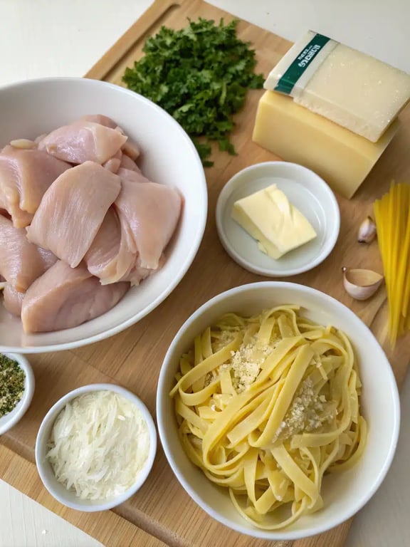 Ingredients for creamy chicken alfredo
