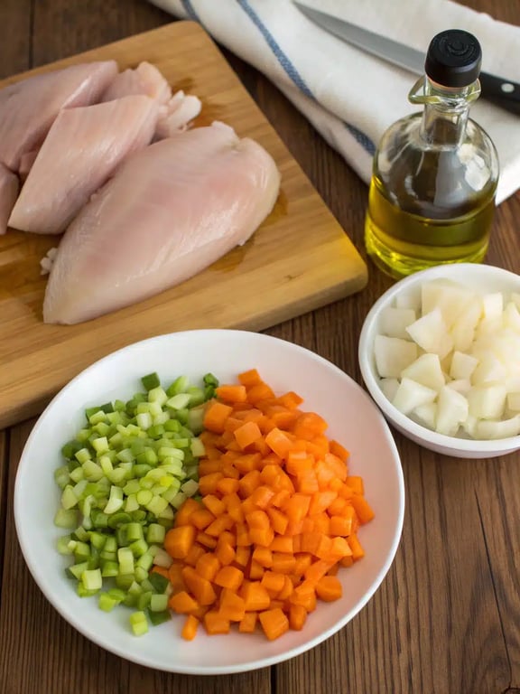 Ingredients for creamy chicken rice soup
