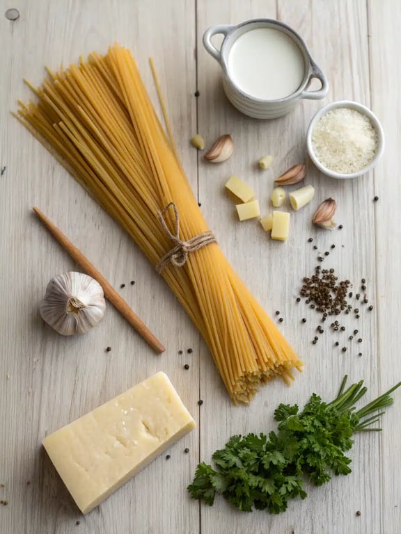 Here’s everything you need to make this classic garlic parmesan pasta. We recommend using freshly grated Parmesan for the smoothest, most flavorful sauce—it melts beautifully compared to pre-shredded cheese, which can sometimes be coated to prevent clumping.- 12 ounces dried spaghetti