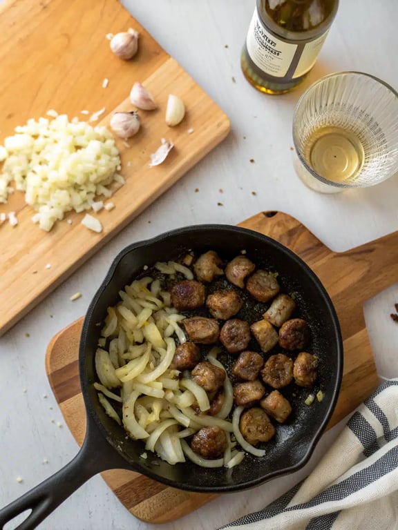 Add the chopped onion to the skillet and cook until softened and translucent, about 4-5 minutes. Stir in the minced garlic and cook for just 30 seconds until fragrant.Step 4: Deglaze the Pan