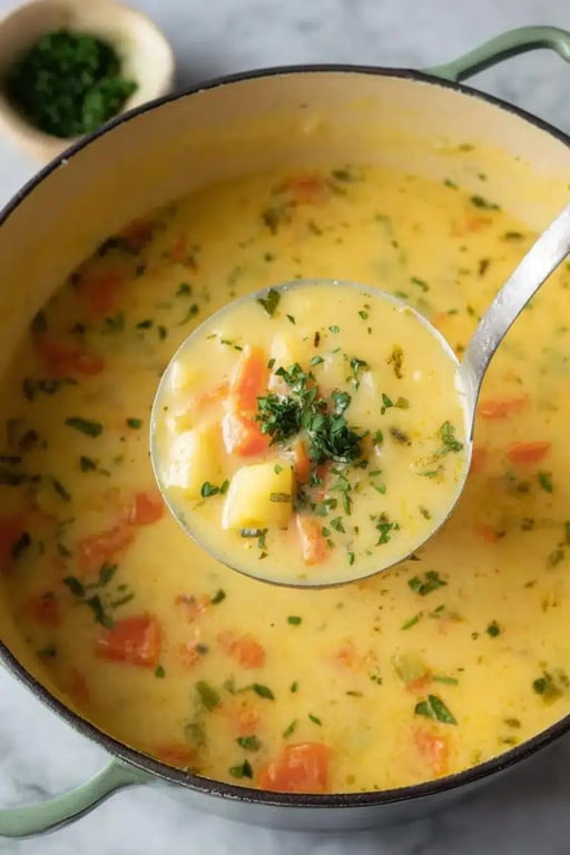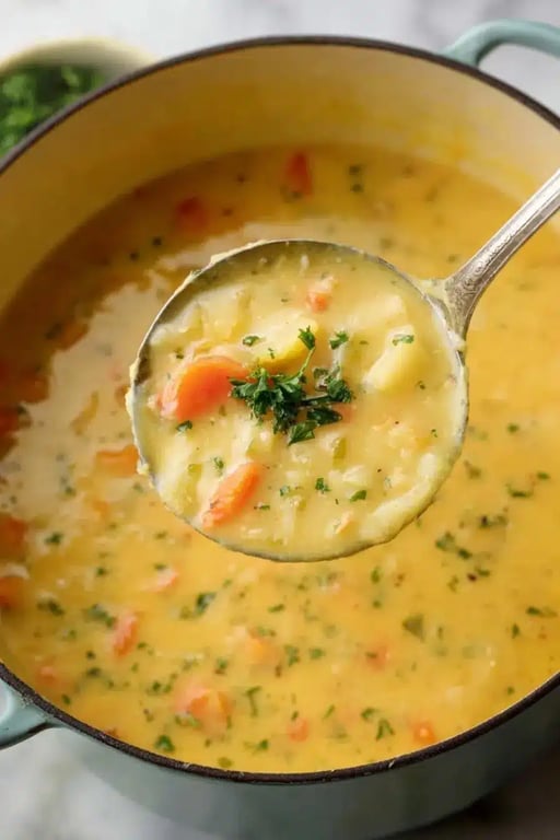When I first tested this recipe, I realized how magical simple pantry staples can be. A few vegetables, a drizzle of olive oil, and good vegetable broth that’s all it takes. The sweetness of carrots blends beautifully with starchy potatoes, while celery and onion add that savory base every great soup needs.