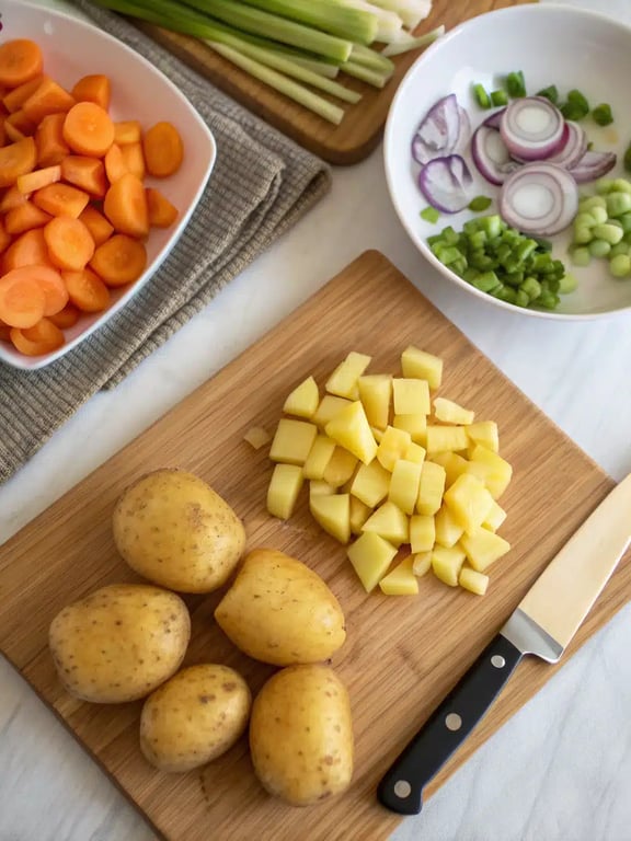 A velvety, comforting soup with a rich potato base, sweet carrots, celery, and peas. Blending only half creates a luxurious texture with delightful vegetable chunks in every spoonful. Perfect for a cozy weeknight meal.
