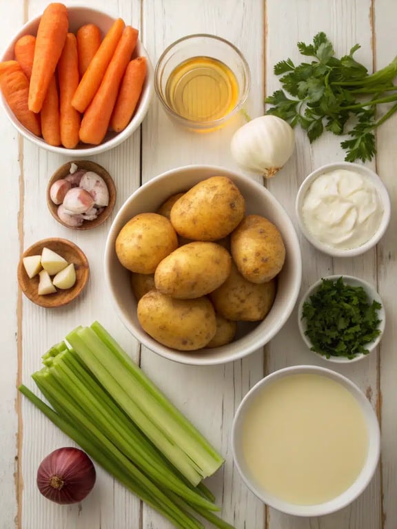 Ingredients for creamy vegetable soup