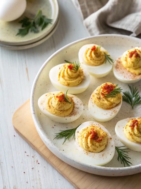When you get this deviled eggs recipe just right, the experience is all about balance and contrast. The filling should be supremely creamy and smooth, with a rich base from the egg yolks and mayonnaise that’s cut by the tangy punch of mustard and vinegar. Meanwhile, the pepper adds a subtle warmth in the background. Texture-wise, you’re aiming for a firm yet tender egg white that holds its shape, providing a gentle bite against the lush, cloud-like filling. After chilling, the flavors marry beautifully and the filling sets up just enough to be picked up neatly. That final sprinkle of paprika isn’t just for looks—it gives a whisper of earthy smokiness that ties the whole classic deviled eggs experience together.Variations & Substitutions