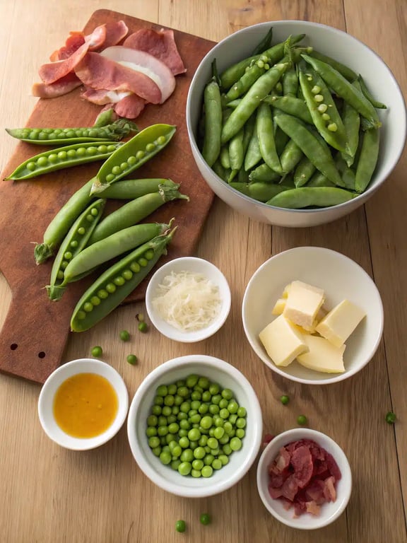 This creamy pea salad comes together with simple, fresh ingredients. Here’s everything you’ll need to make this classic spring pea salad at home.- 2 pounds fresh English peas, shelled (or 16 ounces frozen peas, thawed)