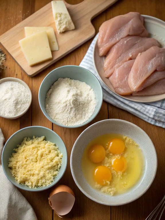Set up three shallow dishes: one with flour, one with beaten eggs, and one with Romano cheese mixed with oregano, garlic powder, and black pepper. Having everything organized makes the coating process smooth and mess-free.Step 3: Coat the Chicken
