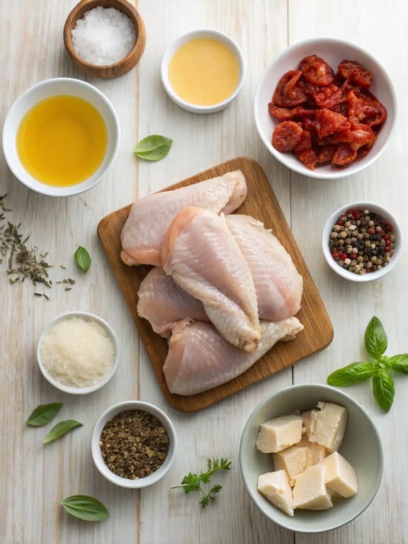 Here’s everything you’ll need to create this unforgettable Creamy Sun Dried Chicken. We recommend using sun-dried tomatoes packed in oil for the best flavor and texture.- 1 1/2 pounds boneless, skinless chicken breasts or thighs