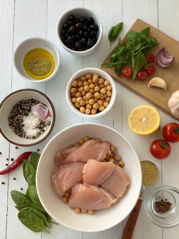 When you get this Mediterranean diet dinner just right, it’s a beautiful harmony of flavors and textures. You’ll know it’s done when the chicken is tender and juicy, not dry or rubbery. The sauce should be rich and slightly thickened from the simmered tomatoes and chickpeas, but still brothy enough to spoon over your grain of choice. The first taste should be bright and tangy from the lemon and tomatoes, followed by the earthy depth of oregano and cumin, and finished with the savory pop of the olives. The spinach adds a lovely fresh element and a pop of color, while the chickpeas provide a creamy, satisfying bite. It’s a wonderfully balanced dish that feels both light and hearty—a hallmark of great Mediterranean chicken recipes.Variations & Substitutions