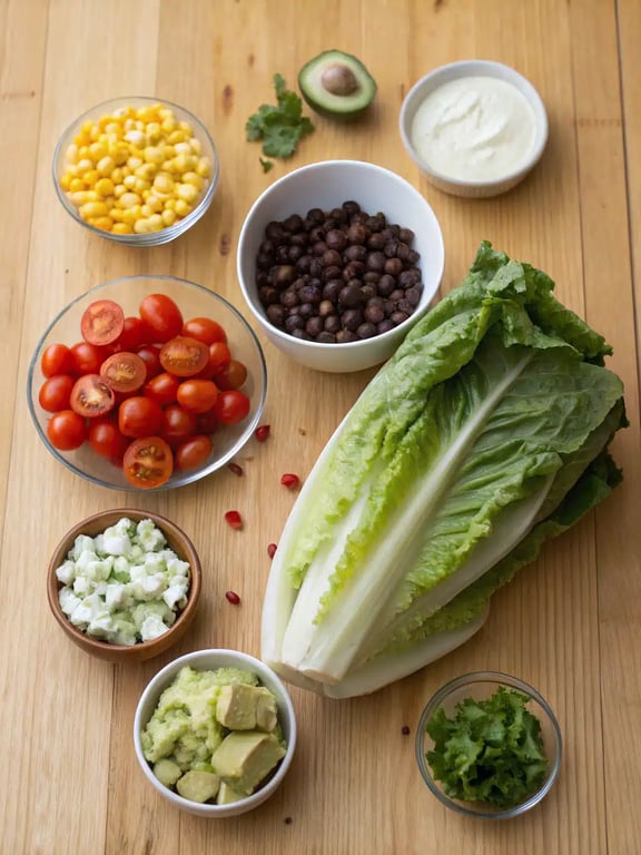 Here’s everything you’ll need to build this incredibly flavorful and healthy salad. We love using fresh, crisp ingredients for the best texture.- 1 large head romaine lettuce, chopped into bite-sized pieces