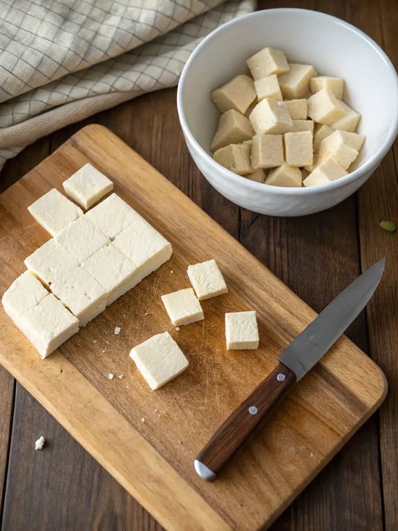 Heat 1 tablespoon of vegetable oil in a large skillet or wok over medium-high heat. Add the pressed tofu cubes in a single layer and cook for 3-4 minutes per side until golden brown and crisp. Transfer the tofu to a plate and set aside.Step 2: Cook the Mushrooms