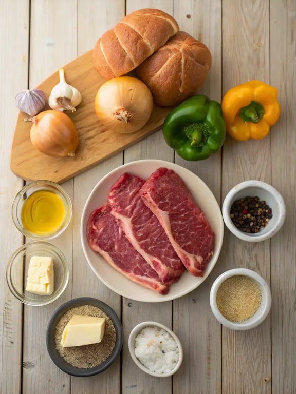 Gathering your cheesesteak sandwich ingredients is the first step to success. We recommend having everything prepped and ready to go before you heat the skillet, as things move quickly. Here’s what you’ll need for this classic, crowd-pleasing Philly cheesesteak recipe:- 1 pound ribeye steak, very thinly sliced against the grain