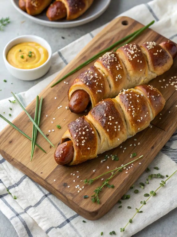 • Sweet & Savory: For a carnival-style treat, skip the coarse salt. After baking, brush the warm pretzel dogs with melted butter and roll them in a mixture of cinnamon and sugar.