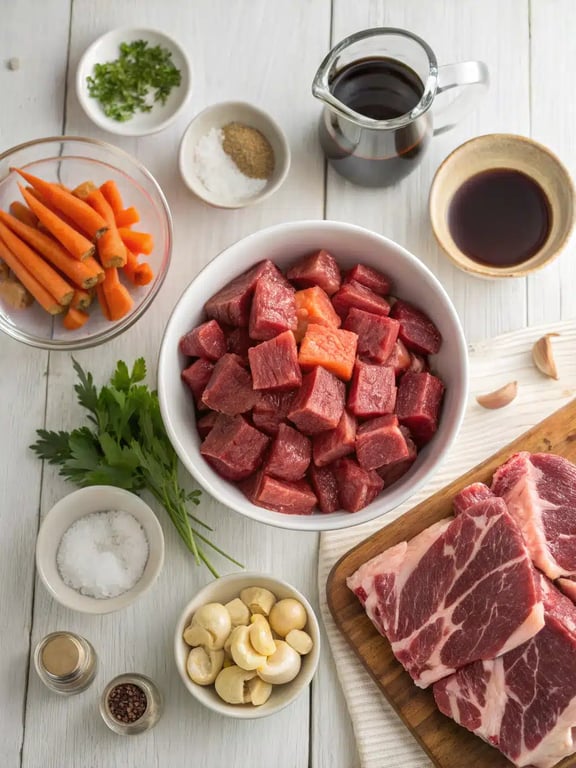 Reunir os ingredientes é o primeiro passo para uma receita fantástica de ensopado de carne. Recomendamos usar um bom caldo de carne, pois ele será a base do molho. Aqui está tudo o que você precisa para este prato reconfortante.- 2 libras de carne assada, cortada em cubos de 2 polegada