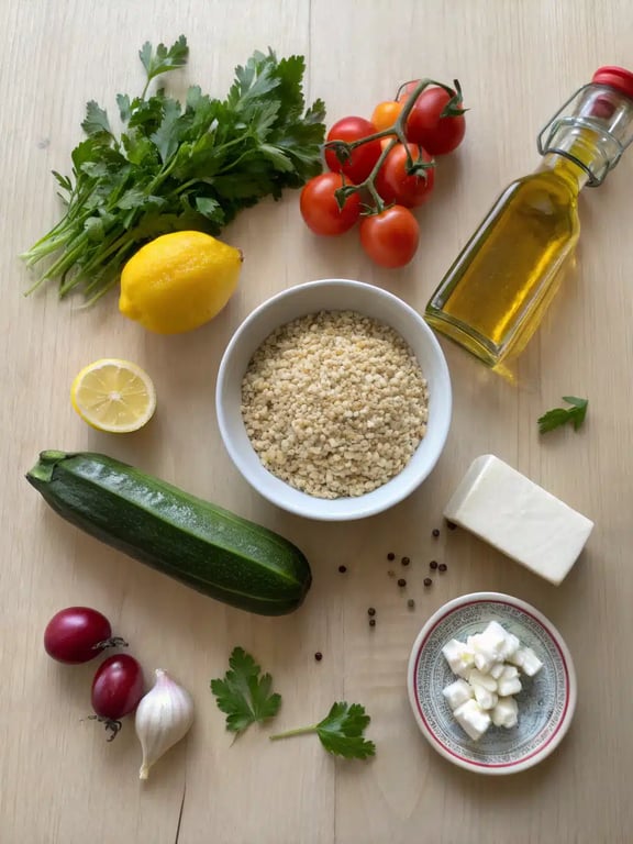 - In a large serving bowl, combine the cooled quinoa, diced cucumber, halved cherry tomatoes, diced red onion, chopped parsley, and chopped mint.