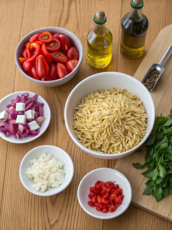 Ingredients for rainbow orzo salad