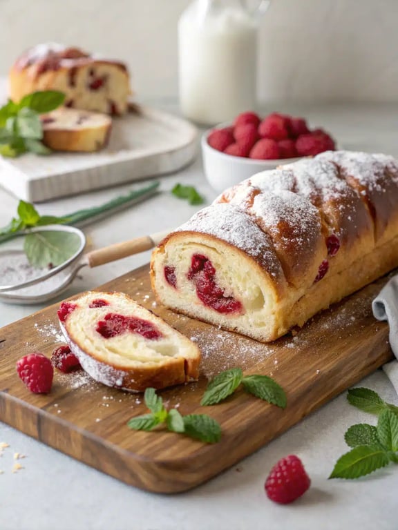 Gently fold in the fresh raspberries by hand, being careful not to crush them. Transfer the dough to a lightly greased bowl, cover with a clean kitchen towel, and let rise in a warm place for 1-2 hours until doubled in size.Step 5: Shape and Second Rise