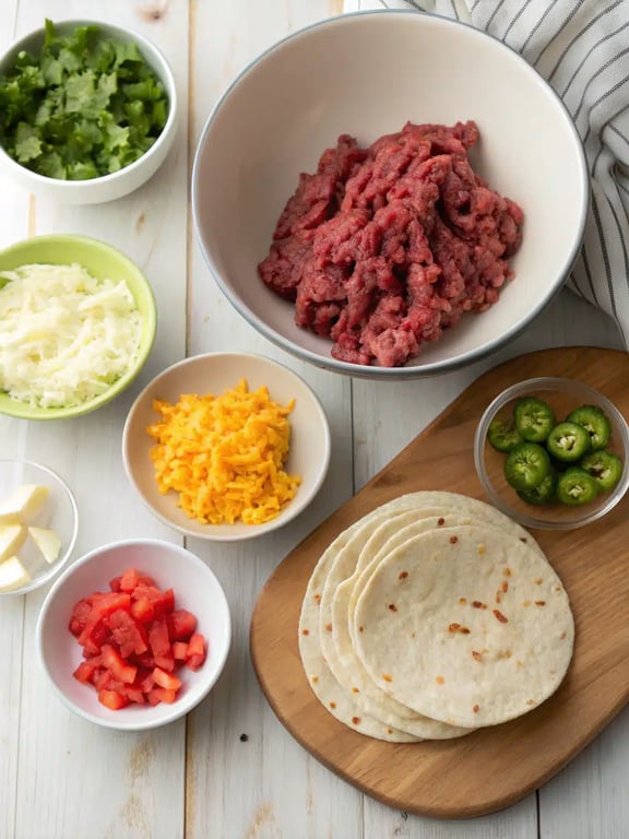 Divide the seasoned beef mixture into 4 equal portions and shape each into a thin, oval patty slightly smaller than your tortilla. Press a shallow dimple in the center of each patty to prevent bulging during cooking.Step 3: Cook the Patties