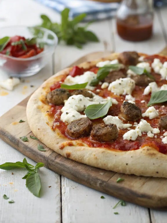 After making this pizza countless times, our team has gathered a few insights to help you nail it on the first try and make it your own.- Flavor Swap: For a chicken feta pizza, simply use ground chicken seasoned with fennel, garlic, and red pepper flakes instead of pre-made sausage.
