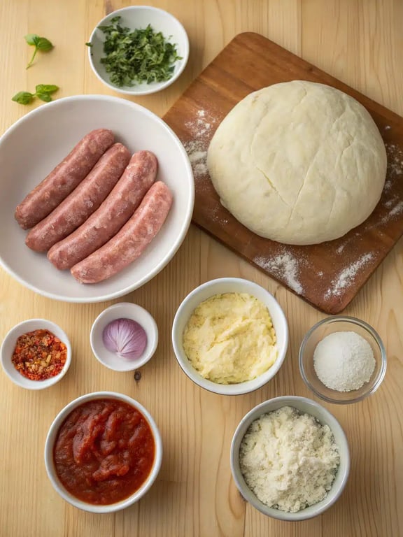 Here’s everything you’ll need to bring this delicious sausage pizza recipe to life. We recommend gathering all your ingredients before you start—it makes the assembly process a breeze.- 1 pound pizza dough, at room temperature
