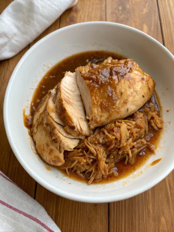 When you get this slow cooker chicken breast just right, it’s a truly satisfying meal. The flavor is savory and well-balanced, with the umami from the soy sauce, a subtle sweetness from the honey, and an herby note from the thyme. The onions and garlic melt into the background, creating a rich, aromatic base for the sauce. Texture is everything here. Properly cooked, the chicken will be incredibly tender and juicy, shredding easily with a fork. The final sauce should be glossy and coat the back of a spoon, clinging to the shredded meat without being gloppy. If your sauce seems too thin, let it cook a bit longer with the lid off. Conversely, if it gets too thick, just stir in a splash of broth or water to loosen it up.Variations & Substitutions