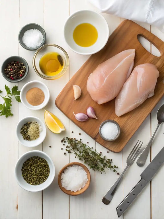 Here’s everything you’ll need to make this simple yet flavorful dish. We recommend low-sodium broth to give you better control over the final seasoning.- 1 ½ pounds boneless, skinless chicken breasts