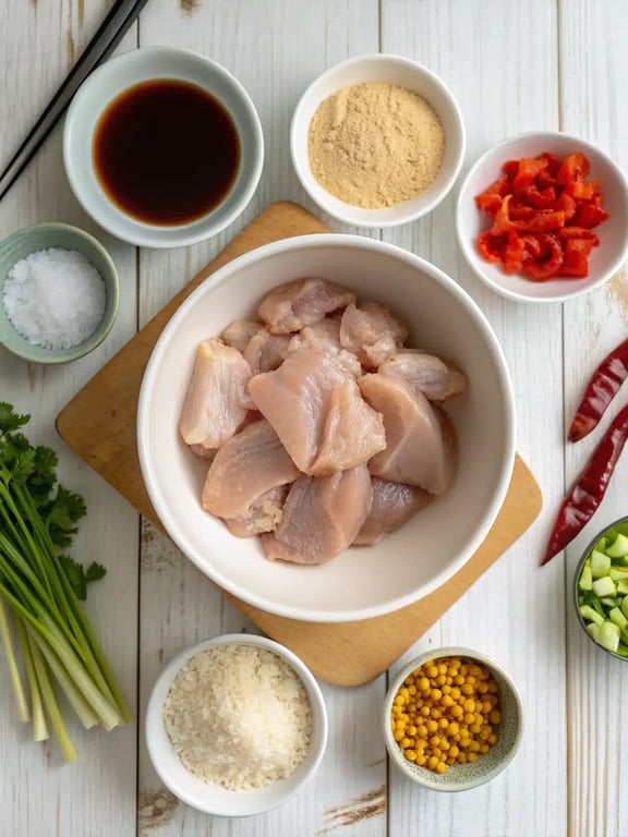 - In a medium bowl, toss the chicken pieces with 1 tablespoon of soy sauce and the cornstarch until evenly coated. Let it marinate for 10-15 minutes while you prepare the other ingredients.