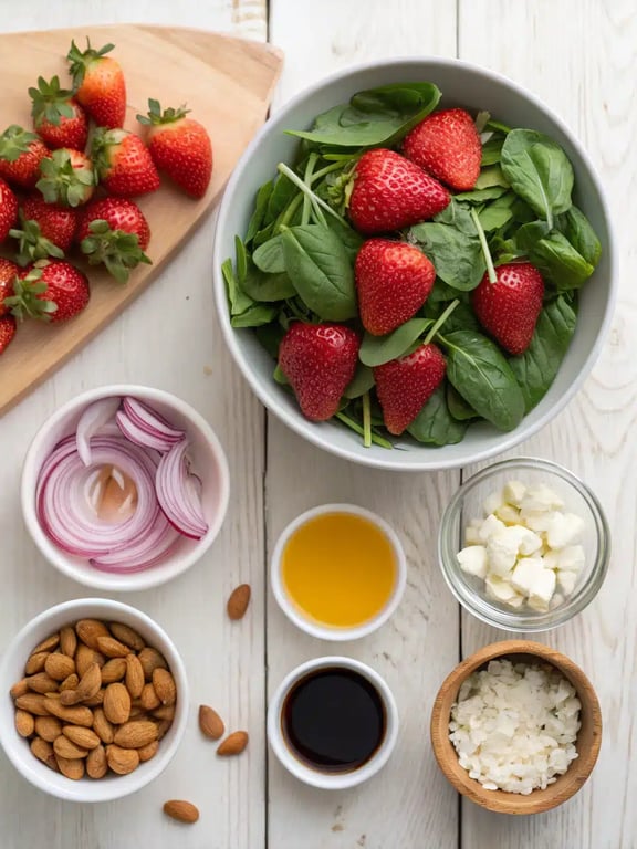 Ingredients for strawberry spinach salad