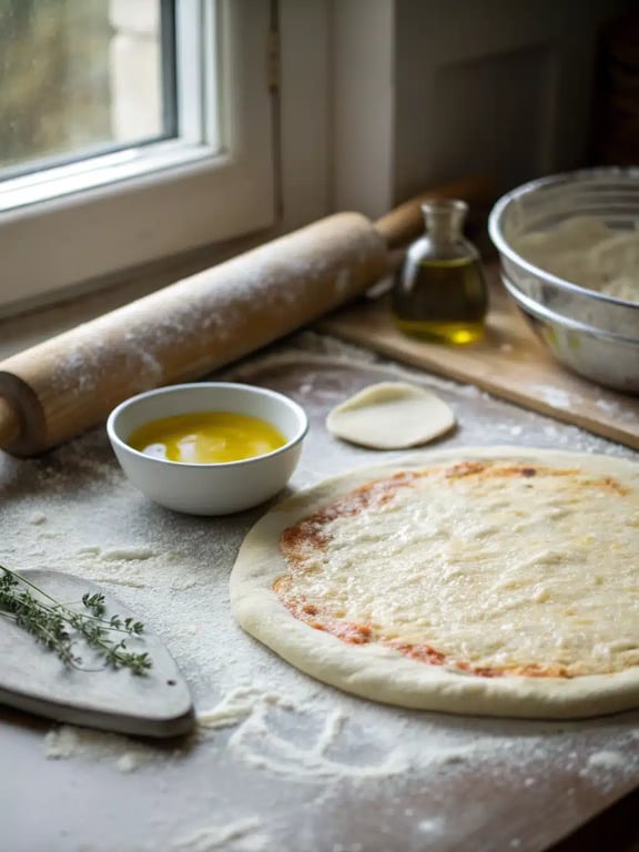 Preheat your oven to 450°F. On a lightly floured surface, stretch or roll the pizza dough into a 12-inch round. Transfer it to a greased or parchment-lined baking sheet and brush the entire surface with the olive oil.Step 2: Create the Flavor Base