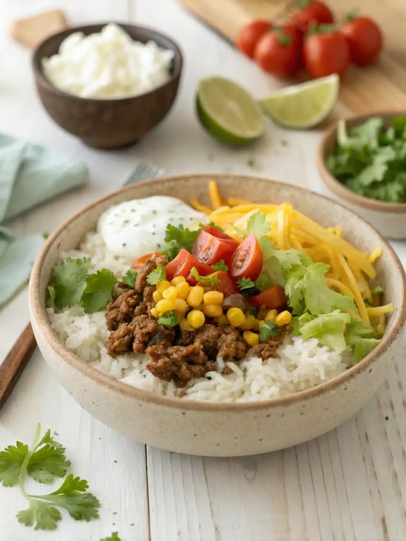 - Protein Power: Ground turkey or chicken works wonderfully in place of the ground beef for a leaner taco rice bowl.