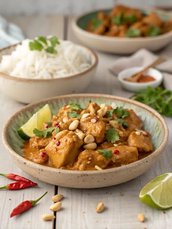 Remove the skillet from the heat. Serve the chicken and sauce immediately over cooked white rice, garnished generously with the chopped peanuts and sliced green onions.Pro Tips & Tasty Tweaks