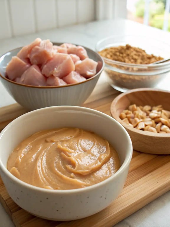 Here’s everything you’ll need to create this incredibly creamy peanut chicken. We love how these pantry staples come together to make something that tastes so special.- 1 1/2 pounds boneless, skinless chicken breasts, cut into 1-inch pieces