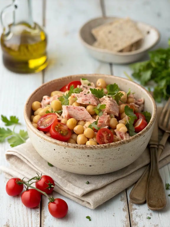 - Flake the drained tuna with a fork directly into the bowl with the chickpeas, ensuring no large clumps remain.
